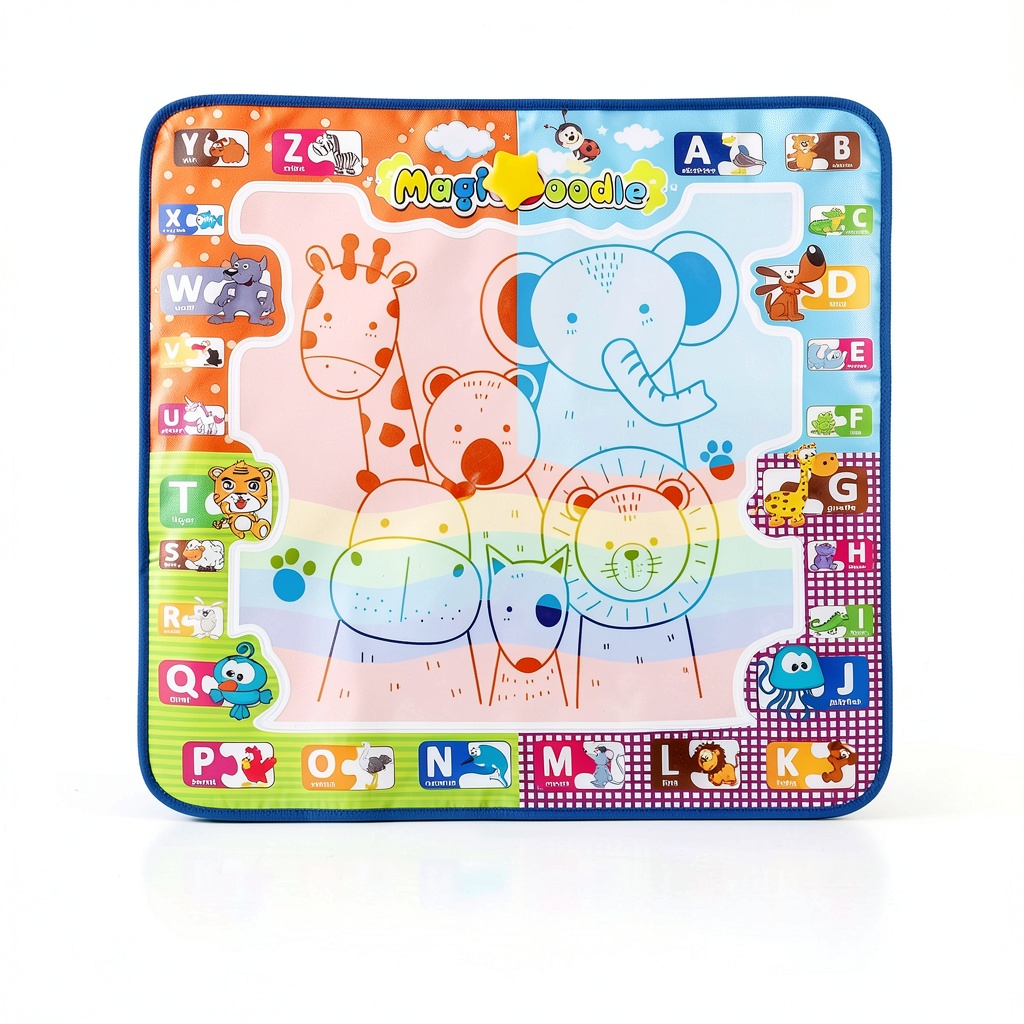 Our water doodle mat stands out through its superior material construction and comprehensive educational value. The soft polyester surface combined with water-resistant backing ensures long-lasting performance while maintaining safety standards for young children. Unlike traditional art supplies that create permanent messes, our reusable design eliminates the need for constant paper replacement and prevents accidental marks on walls or furniture. The inclusion of multiple drawing aids—including molds, templates, and instruction booklets—provides greater value and extended play possibilities compared to basic drawing mats available elsewhere.
